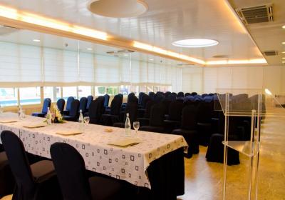 Con aire acondicionado y calefacción. Totalmente acristalado y con sistema de aislamiento acústico y térmico. El salón perfecto para la celebración de banquetes de boda, comuniones o para la realización de cáterings o cocktails.